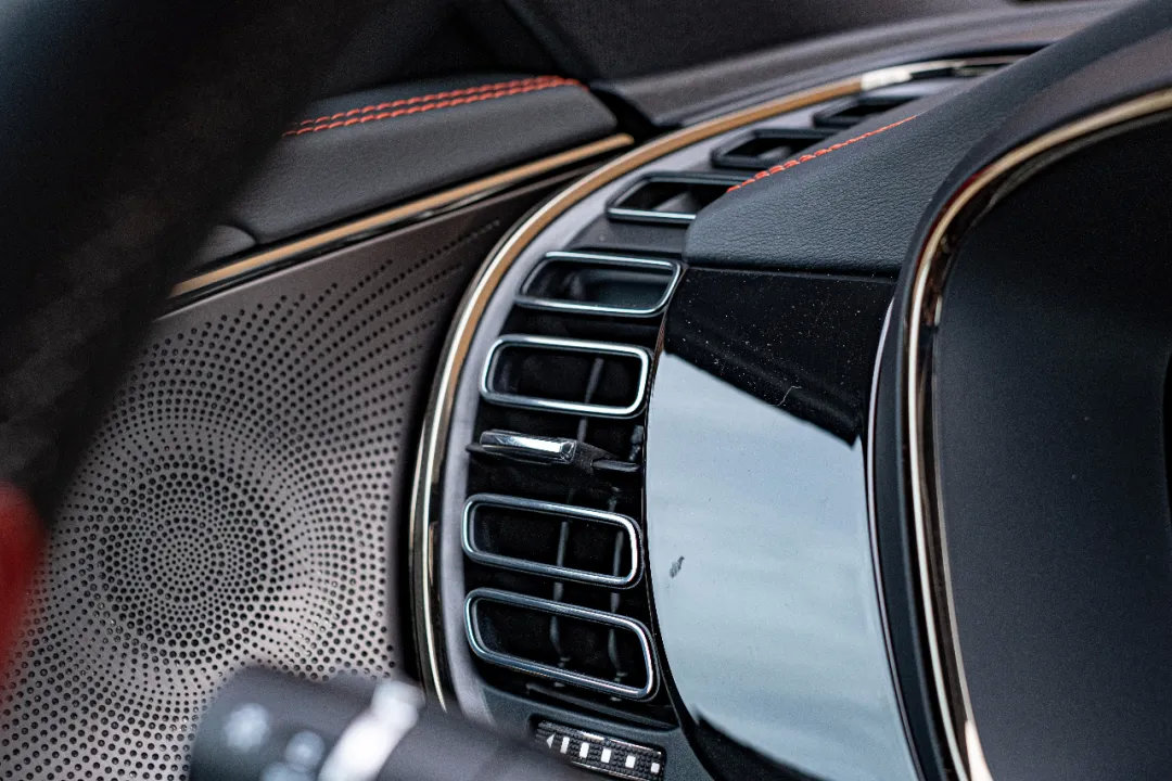再来说说中国元素,大家都知道西汉都城长安城的地标建筑大雁塔。而这辆汉的空调出风口则就以大雁塔为元素设计,除了一层一层越来越窄的那种感觉有些神似之外,其它还有哪像欢迎小伙伴们补充。