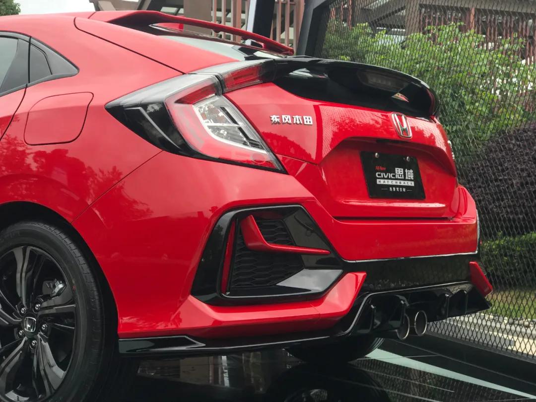 最接近的地方自然是外观设计,两厢造型也是全新CIVIC思域Hatchback的设计精髓。前脸部分的设计和在售的三厢思域是保持同步的,不过加入了非常多黑色的运动套件,包括熏黑格栅、熏黑把手、熏黑侧裙边等,看起来战斗感十足。