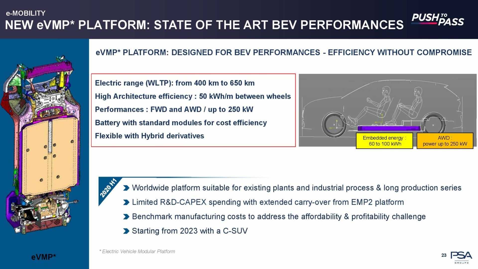 来自法国方面的最新消息显示,PSA集团正在研发一个名为eVMP的全新平台(电动车模块化平台),用来制造C段(紧凑型,Compact)和D段市场(中型,Mid-Size)的100%电动车型。