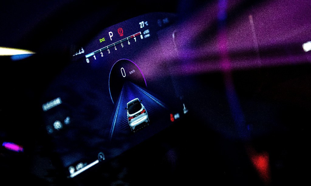 而在车尾部分的LED尾灯,透明灯罩不仅像后市场改装件,其科技含量也颇高——尾灯是矩阵式光源,由256颗LED构成,交互式的显示效果充满了科技感。