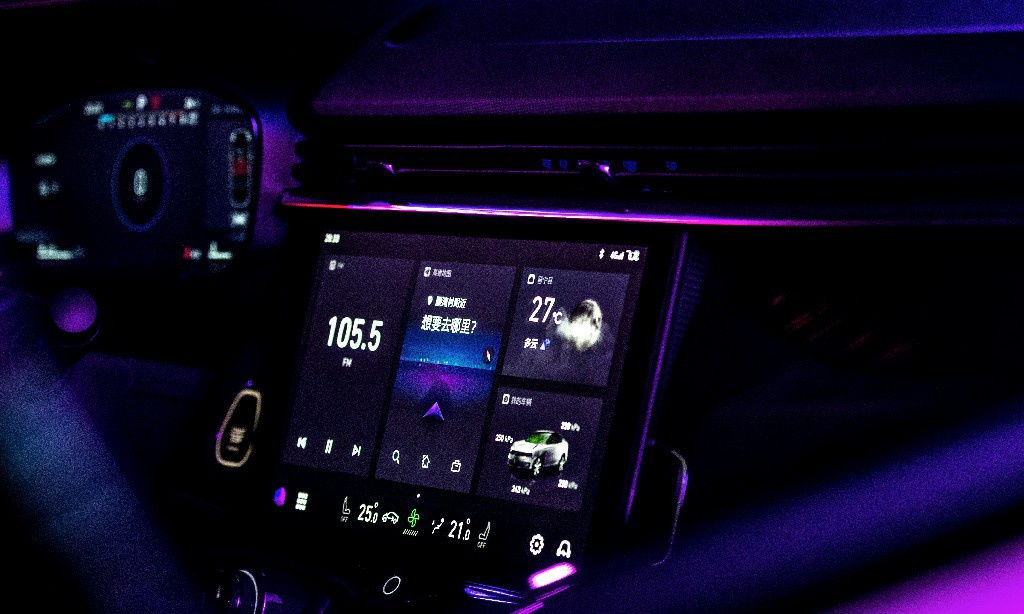 在领克05车内有一块12.7英寸的1080P高清触屏,它既是车内真正的控制中枢,也是一块娱乐Pad,几乎绝大部分功能都需要透过它施加指令方可完成操作。