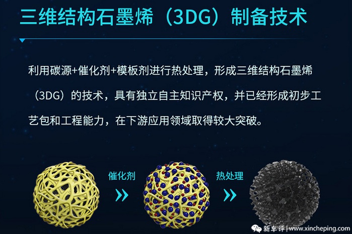 如果说FCEV属于着眼未来的战略储备,那具有独立自主知识产权的3DG石墨烯制备技术便为了解决纯电动车当下的用车痛点而来。石墨烯至今未能在应用在动力电池上,原因无外乎贵一个字。而这项技术解决了石墨烯大规模制备的成本问题,让成本压缩至常规制备方式的1/10,石墨烯材料能够应用在快充锂离子电池、超级电容、锂硫电池和轻量化车身材料等多个领域。