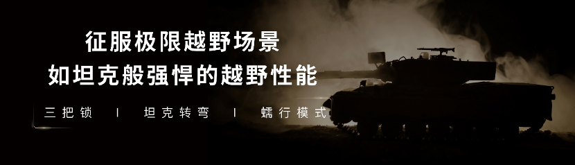 三把锁、坦克转弯、蠕行模式的3大越野利器,搭配专业非承载式越野底盘、9种驾驶模式、360°全景影像、底盘可视、轮胎循迹可视、越野场景信息可视等专业配置,令驾驶者即便是越野0基础的新手,也能肆意征服全地形。