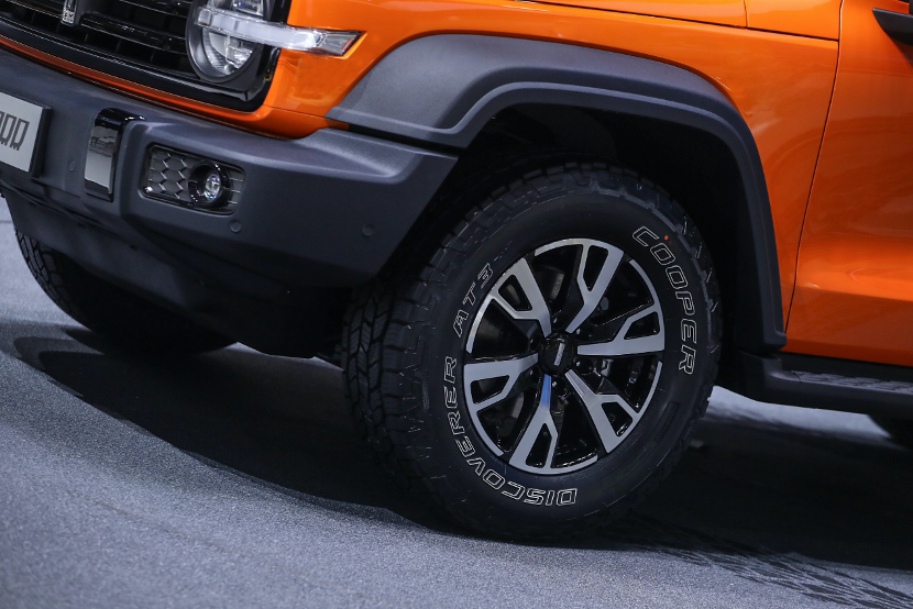 外观造型方面,车头的圆形大灯内含三个横条发光灯组,居中的转向灯“破圈”圆形灯头,向外一直延展至车头侧面,同时三横灯组则向内与中网三条水平镀铬亮条及前保险杠一起。车身侧面,锋利的轮廓与健硕的曲线相结合,配合局部圆形造型,诠释“刚柔并济”的东方美学。车尾同样延续这一理念,尾翼向上扬起,配合家族竖状立体LED尾灯,凸显运动风范与时尚气息,而外挂备胎与粗壮的后保险杠,也进一步彰显其硬派越野SUV的身份。