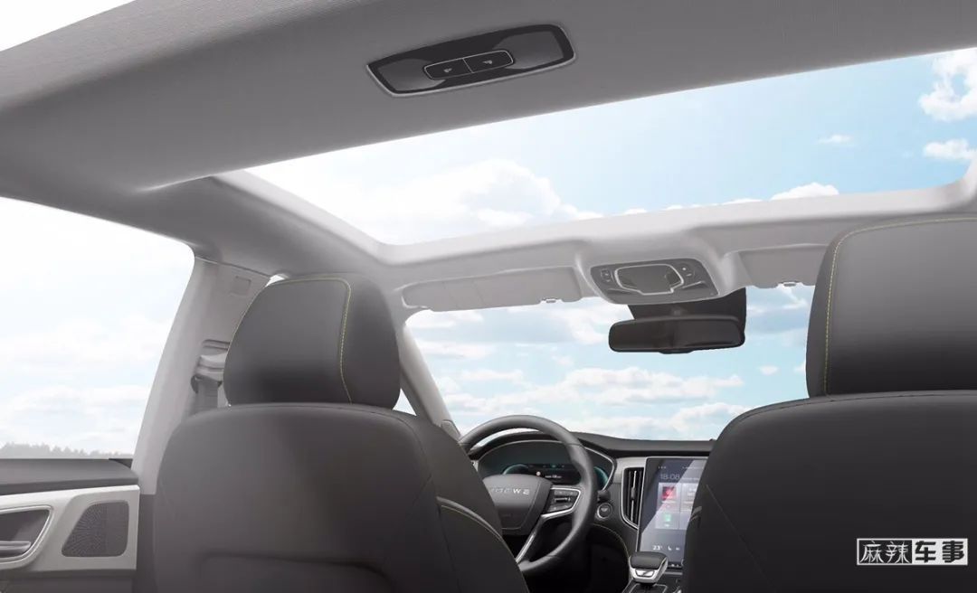 内饰变化不是很大,但是有一点值得关注,就是全景天窗的加入。全玻璃覆盖式的车顶,达到3m²的采光面积,在i6 MAX里前后排都能享受到充足的阳光。
