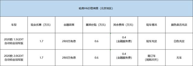 注:此价格调查仅针对北京地区2020款哈弗H6进行,为近期有购车意向的北京消费者提供适当参考。