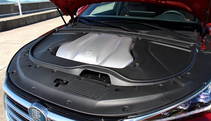 比亚迪唐DM搭载一台最大功率141kW;最大扭矩320Nm的2.0T发动机,匹配6速双离合变速箱。而如果你选低配的车型(前轴没有电机),那算上电动机的附加后,整套动力总成的综合功率为321kW;650Nm。而我们今天试驾的完全体(前后都有电机),系统综合功率为431kW;最大扭矩900Nm。两个版本的官方百公里加速成绩有差异(5.1s/4.3s)。