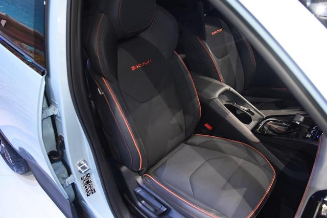 车门从内侧开启的方式比较新颖,位置在车门扶手的最前端,向上翻折打开车门。前排采用一体式座椅,视觉效果上运动,不过填充物还是比较柔软的,主要还是为了保证乘坐舒适性。