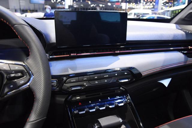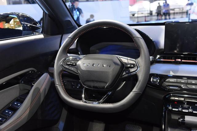 三辐方向盘采用更运动的平底造型,有皮质包裹,两侧还有打孔处理,握感舒适。