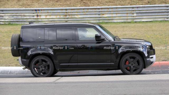 近日,我们从网上获取到路虎卫士V8原型车的谍照,新车将以110型号为基础打造,最快2021年年底亮相。外观上,新车采用全黑车身伪装,我们可以发现的细节有,五辐式大尺寸轮圈、大尺寸刹车卡钳、车尾双边共四出排气设计等。和之前的效果图对比,测试车和效果图也有很多相似之处。路虎卫士V8将由捷豹路虎旗下的特别车辆部门SVO进行研发,上市后的车型将采用更运动的包围以及低扁平比轮胎。动力将搭载来自宝马的4.4T涡轮增压V8发动机,最大功率或有500马力。(谍照来源motor1,配图为谍照+效果图)