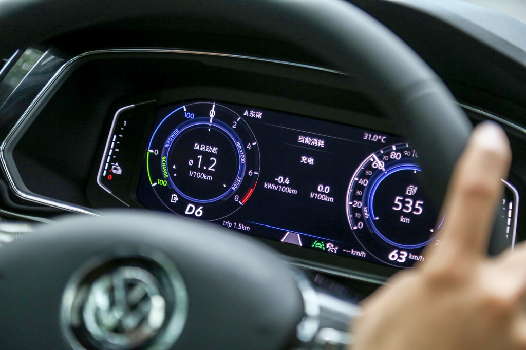 除了纯电模式,途观L新能源还有四种模式可选,分别是混合动力、蓄电池维持模式、蓄电池充电模式和GTE模式,这四种模式下,1.4T的发动机会参与工作。虽然这台车尾标显示是430TSI,实际上电机加上发动机同时工作,整个动力系统最大扭矩有400Nm,数据看起来要比380TSI都要强,但实际动力表现大家都差不多。
