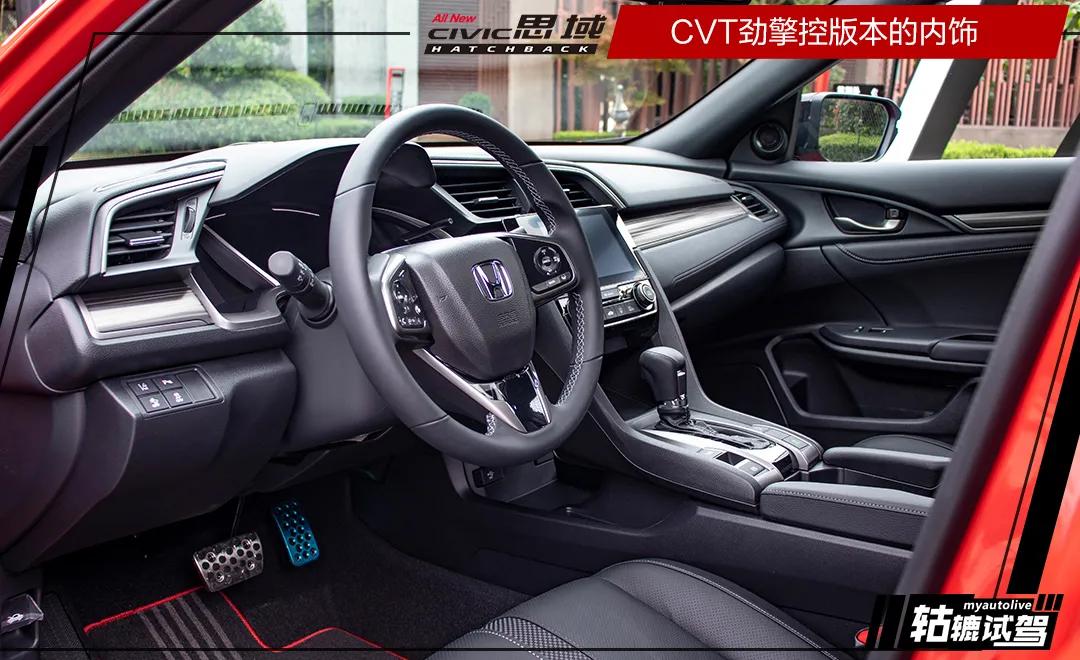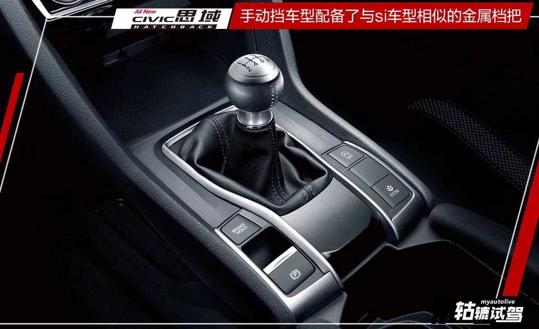 相比于外观,思域Hatchback的内饰应该不会太令人兴奋,虽然中控台的整体设计风格同样与FK8相似,但与三厢版基本一样的设计,大家已经很熟悉。而思域Hatchback车厢内部有一个比较好的设计是手动挡车型配备了与si车型相似的金属档把。遗憾的是,轱辘哥试驾的是CVT劲擎控版本,没有体验金属档把的触感。