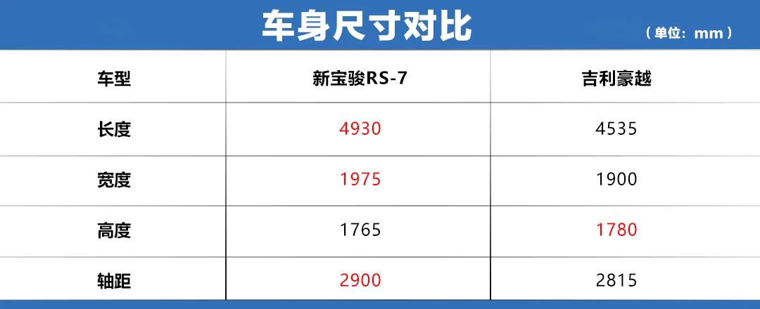 谈到大空间,则不得不提同处该级别的吉利豪越。该车的最大亮点在于拥有宽敞的车内空间,且与新宝骏RS-7的定位接近。因此,我们不妨将两款车型作一番对比,看看谁的综合实力表现更优?