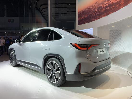 车身侧面,侧面采用时下年轻人喜爱的溜背式SUV造型,流畅的曲线与车尾轮廓连成一体,并在尾部形成类似于“鸭尾”的造型,进一步提升了整车的运动感。两侧尾灯沿用了ES6不规则的设计并采用熏黑处理,运动气质比前两款产品更强一些。另外,该车的风阻系数官方给出的数据为0.26Cd。