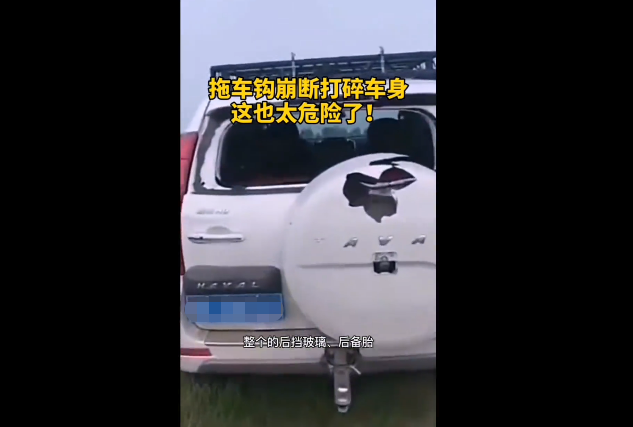 长城炮 (配置|询价)拖车钩断裂,大家应该有所耳闻了。几日前,一位用户在网上发布了一段视频,当时长城炮陷在坡上,前方车辆在救援时,长城炮的拖车钩发生断裂脱落,飞向前车并砸坏了其玻璃、车内部件,所幸没有人员伤亡。