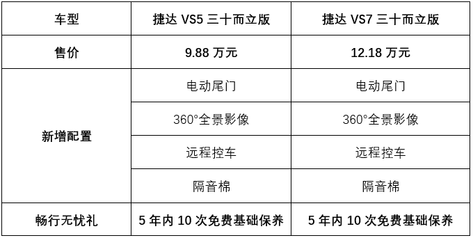 以用户为中心始终是捷达品牌30年不变的承诺,捷达VS5/VS7三十而立版,特别推出“畅行无忧礼”优惠政策,送5年10次基础保养,对于用户而言就是“保养不再花钱”!
