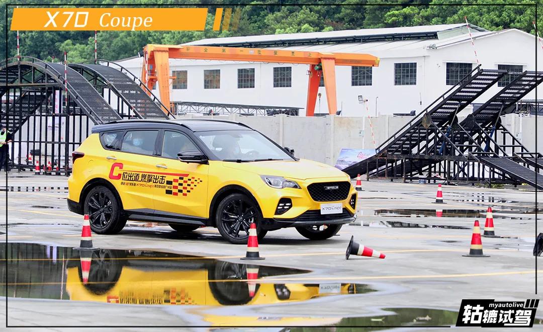 值得一提的是,X70 Coupe配备了主打抓地力的马牌UC6轮胎,在试驾当天的积水路面上,依然有着非常好的刹车表现。