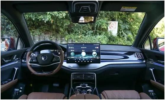 新车内饰采用环抱式驾驶舱设计,中控台的线条非常简洁,双色内饰也使车内氛围十分温馨,并突出了新能源车型的身份。此外14.1英寸的2.5D曲面中控屏和12.3英寸全液晶仪表的组合也是非常抢眼,中控屏内置基于AliOS斑马智行解决方案的互联网汽车智能系统3.0-Pro系统。