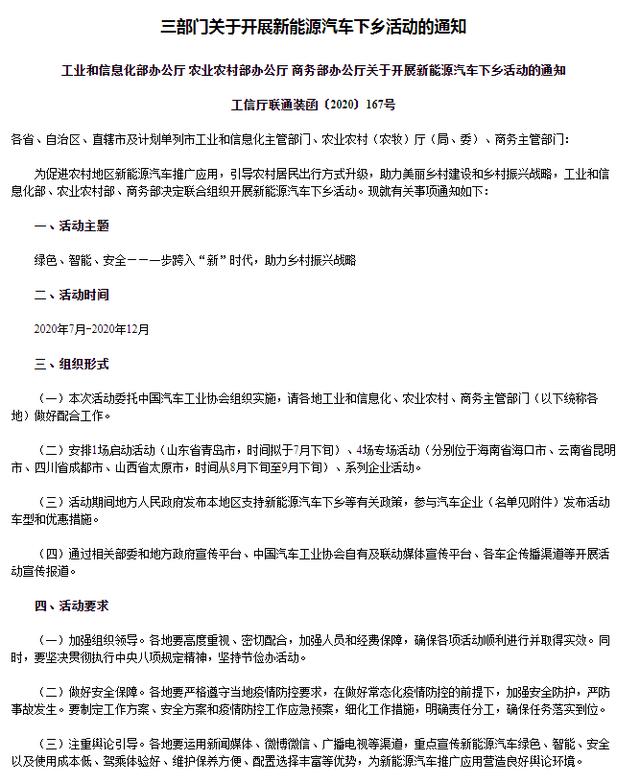 7月中旬的时候中国汽车工业协会发出《三部门关于开展新能源汽车下乡活动的通知》后,立马引起了汽车行业的关注,无论从消费者的角度还是汽车经销商以及厂家的角度都是有利的,不仅让农民得到了实在,也让厂家卖车赚钱,是一个双赢的局面。