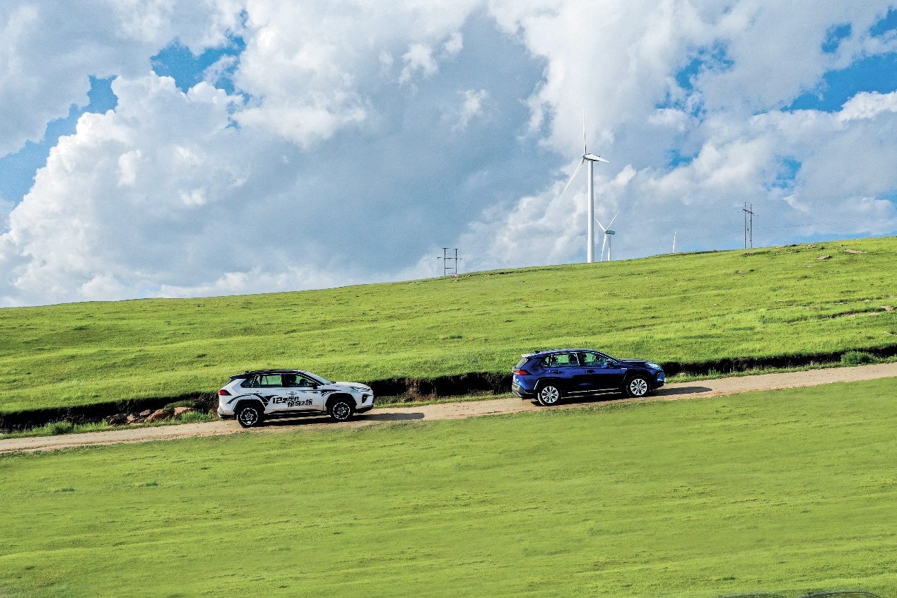 并且这里的风能持续稳定,因此在周围正在开发亚洲最大的风力发电场,如此数量众多的风力发电机同样是十分壮丽的景观,据说扇叶每转一圈就可以产生1-2度电,属于非常清洁环保的能源。说到环保不得不给朋友们安利一下威兰达双擎版,首先丰田混动系统的可靠程度自然毋庸置疑,之前就听说过这样一句话:世界上有两种混动,一种是丰田混动,一种是其他混动。这次也终于有幸领略一番,这辆威兰达双擎版并不需要单独进行充电,而是通过驾驶过程中发动机产生的部分能量以及刹车或减速的动能回收对蓄电池进行充电。百公里油耗只有5L左右,车辆会根据工况自动协调电机和燃油发动机的工作,即使在城区中拥堵的早晚高峰仍然可以保持这个油耗水平,既节省能源,同时减少碳排放,在清新的草原上驾驶这辆威兰达双擎版实在是再合适不过了。