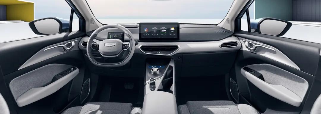 和外观一样,几何C的内饰几乎延续了几何A (配置|询价)的设计风格,采用了极具家居风格的浅灰色作为内饰配色,加上简单干净的型面处理,配合中央面板和中央通道上的多出六边形几何图案,以及律动环抱式七色氛围灯,展现出了与众不同的科技感和未来感。
