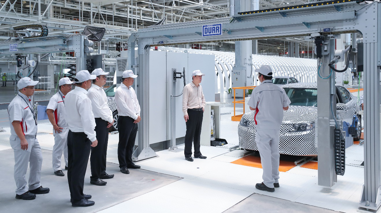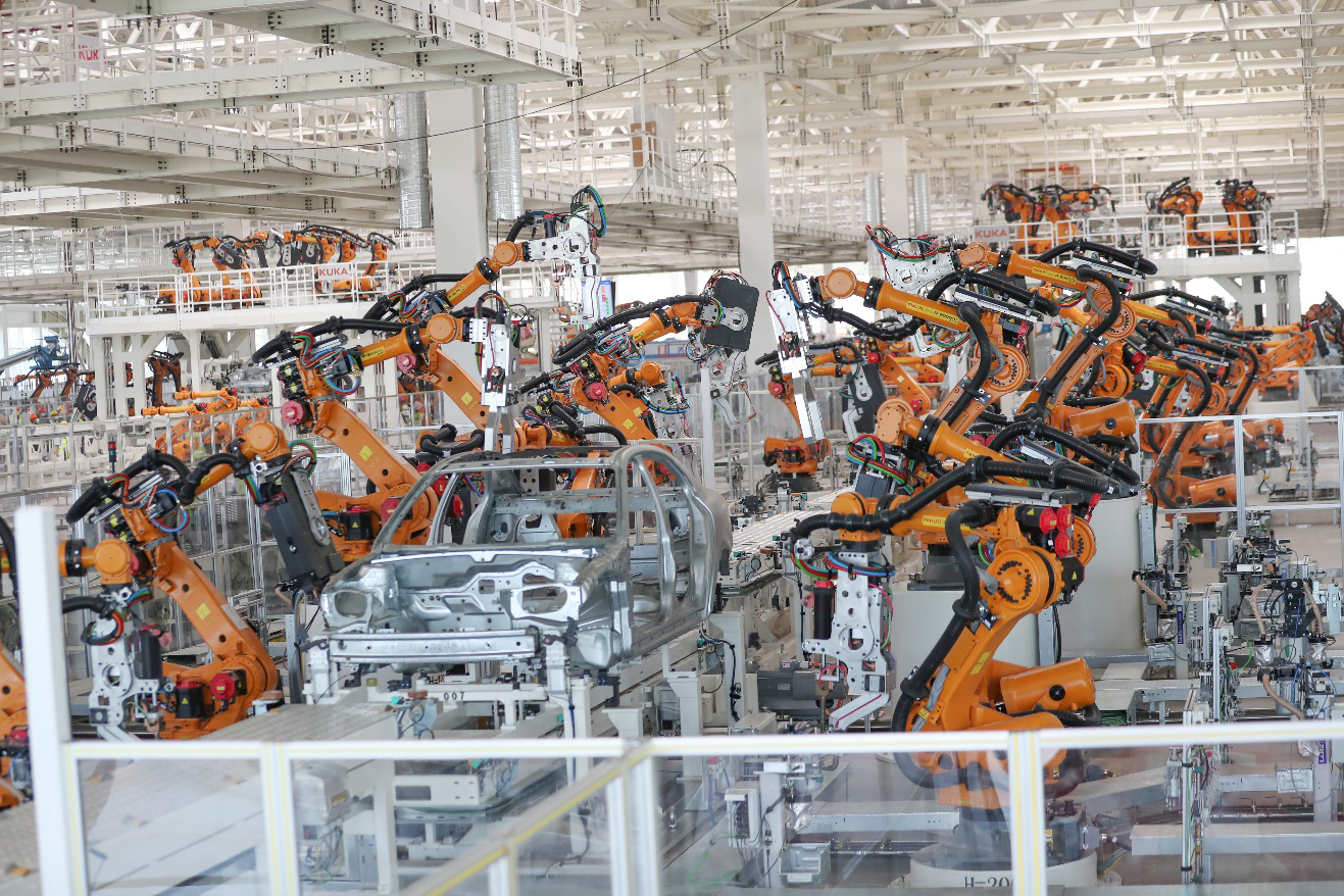 四大车间分别配备了德国舒勒全自动冲压生产线、德国库卡和日本发那科智能装备、德国杜尔的全自动涂装生产线以及全自动装配线,均为世界最先进的智能装备。