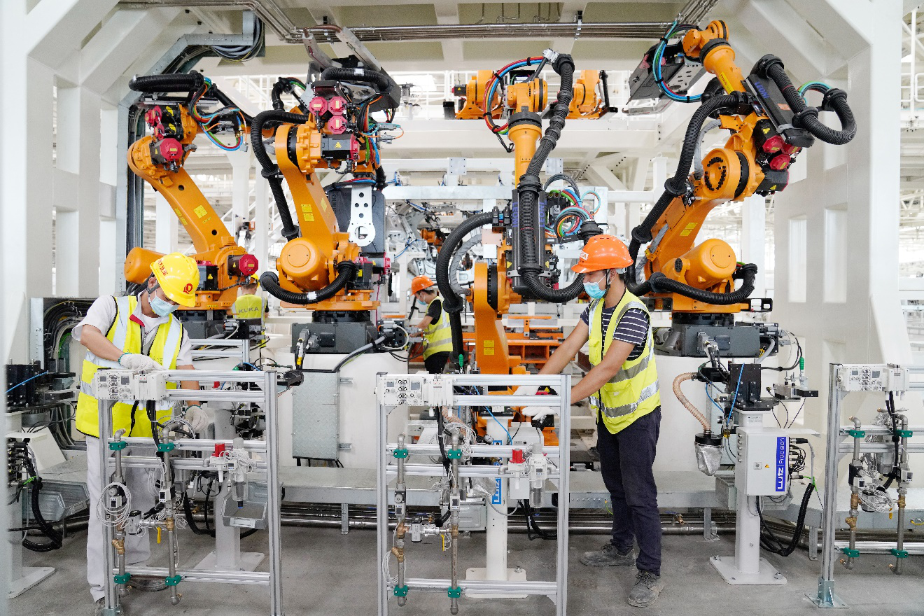 据工作人员介绍,两大基地全面达产后能做到每分钟生产1辆车。这如何能做到呢?离不开冲压车间、车身车间、涂装车间、装配车间这四大“地标最强车间”的支持。