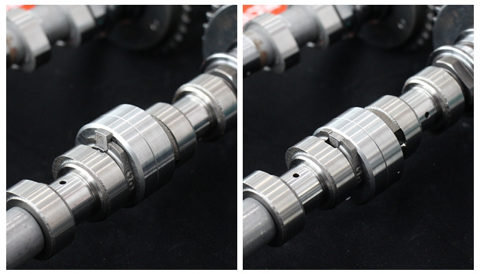 另外非常有意思的是,你会发现除了凸轮轴上方的电机机构(可单独更换),整个CVVD的结构都是纯机械式的,这就保证了后期的维护便利性及成本性。毕竟通俗点说,这个机构就是纯铁疙瘩,坏了也只需更换凸轮轴(正常使用下凸轮轴的损坏几率可想而知...)。