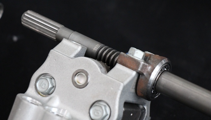首先起亚的CVVD发动机的凸轮轴会跟一个电控机构结合在一起,电控机构通过旋转来左右移动上方的轴体,从而带动调节下方凸轮的位置,使得凸轮的转速可以相对凸轮轴进行改变(形成相对的速度差)。