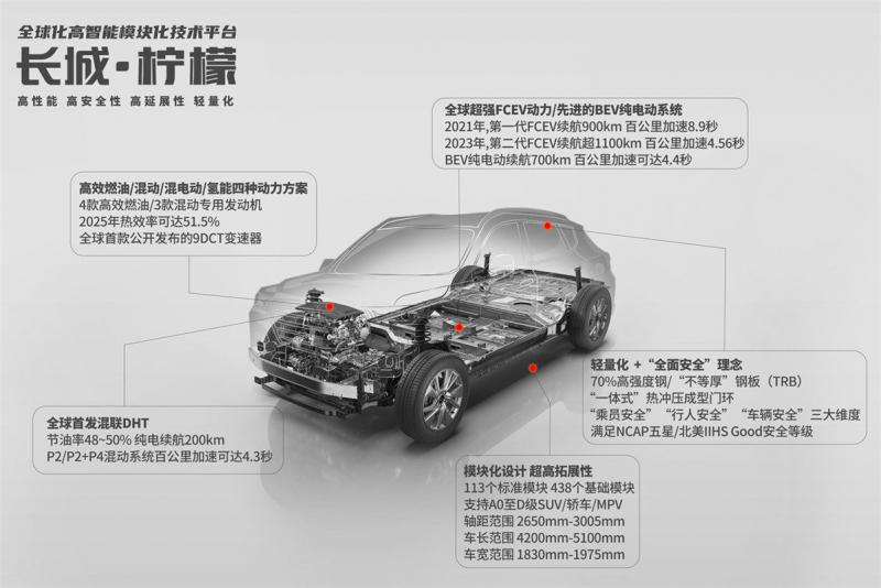 “柠檬”是长城汽车全球化高智能模块化技术平台,打造出的产品将更具轻量化、高性能、高安全的精匠品质;“坦克” 是长城汽车全球智能专业越野平台,拥有强悍动力、智能化越野模式和极致的越野能力,平台实现了越野性能参数的领先,为全球用户提供极致的越野体验;“咖啡智能”是长城汽车面向未来出行的智能系统,涵盖智能座舱、智能驾驶和智能电子电气架构,是驱动长城汽车向全球化科技出行公司转型的数字引擎。