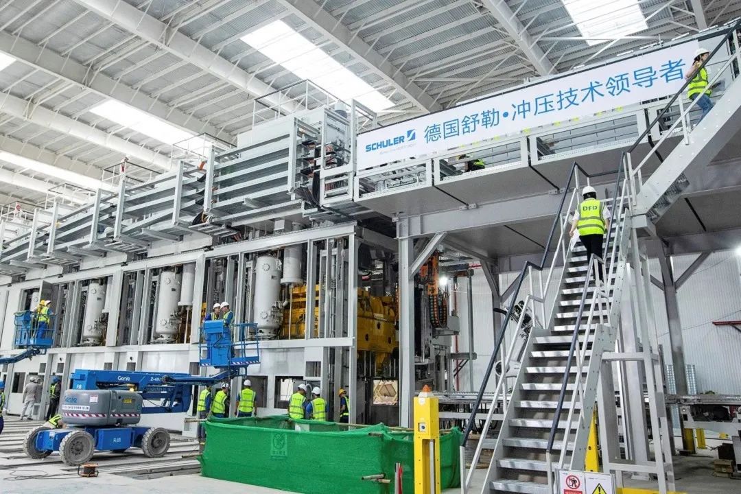 其中,恒大工厂的冲压车间采用德国舒勒全自动冲压生产线,其拥有MMS智能自诊断系统,为世界领先的全自动冲压生产线;车身车间采用德国库卡和日本发那科智能装备,并采用数字化双胞胎技术,能够实现生产数据跨车间协同;涂装车间采用世界先进的德国杜尔生产线,可实现全自动喷漆、涂胶,并引入横置烘炉、快速换色等先进技术;装配车间采用世界自动化率领先的德国杜尔装配线,并配备虚拟匹配系统。众多先进设备和技术的加持,使得一块钢板到整车下线,几乎全部由机器人完成工作,体现出恒大汽车工厂极强的智能化、自动化的制造水平。