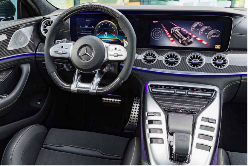四门的GT63在内饰氛围这一块儿,绝对是拿捏的死死的。虽然像大联屏、柏林音响、拇指可控方向盘、多色氛围灯这些配置大家早已见惯了,但你要把这些玩意儿随便去掉一个,那可就不是大家喜欢的奔驰了。而且奔驰要传达给你的不仅是要开着爽,内饰环境也得同样到位才行啊。