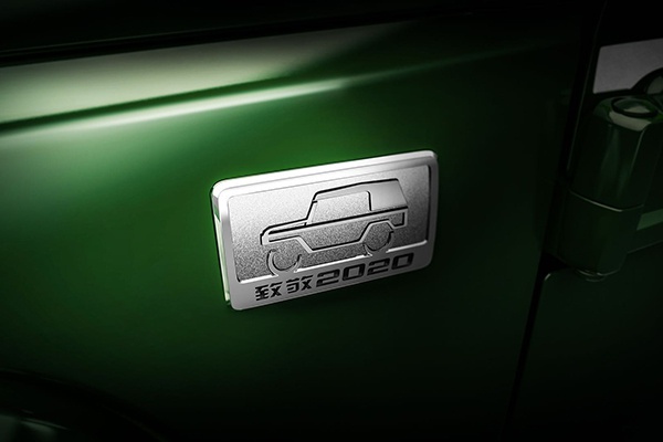 从官方公布的BJ40短轴版侧面图来看,短轴版的车型采用了双门的车身设计,车厢后部则采用了黑色的顶罩设计;目前尚未确定是否有后排座椅。值得一提的是,作为短轴版车型,BJ40致敬2020版在车身周围增加了很多专属的铭牌标致,比如车身前叶子板处就有银色的“致敬2020”铭牌凸显身份。