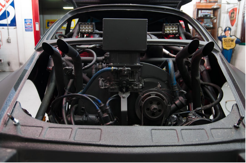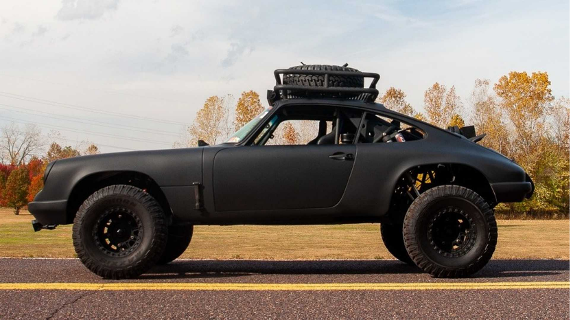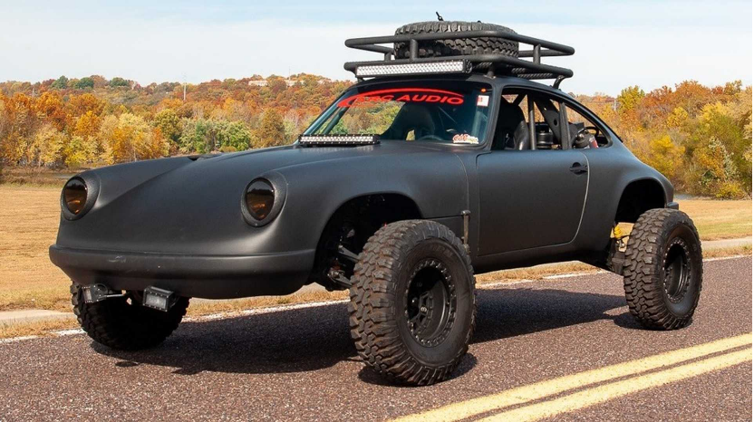 因为这台高脚青蛙要去“参加”Baja(巴哈)比赛,与刚才的那台欧陆不同,这台保时捷原来的六缸发动机已经换成了2.3升四缸机,风冷式发动机可从构造中省去许多冷却组件。反过来,也减少了可能出现的机械故障,也是将重量降低到最小,四个排气口从发动机舱直耸云天。