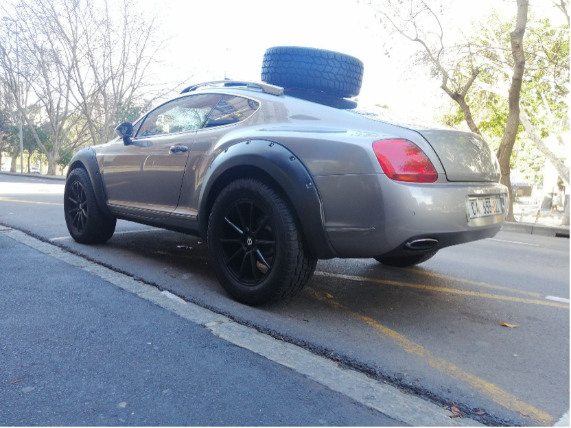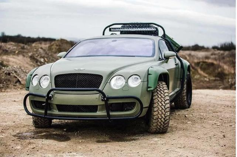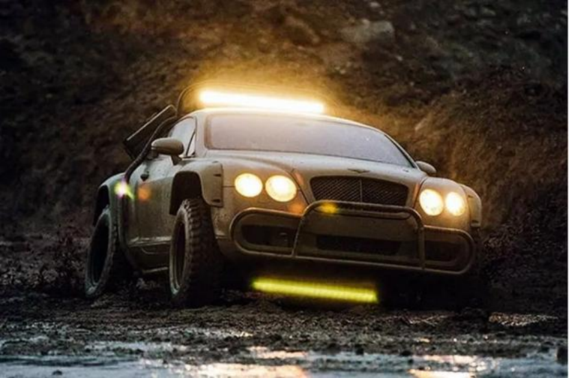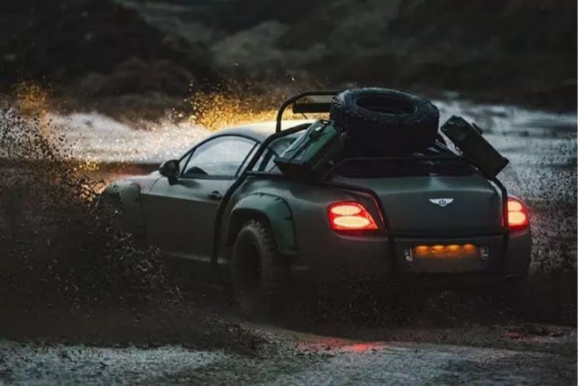 实际上,这已经不是欧陆第一次去Off-Road了。在此之前,也有一辆,升级了氮气避震来提升车身高度,加宽轮拱,加装防滚架、车顶甚至还有两个副油箱。