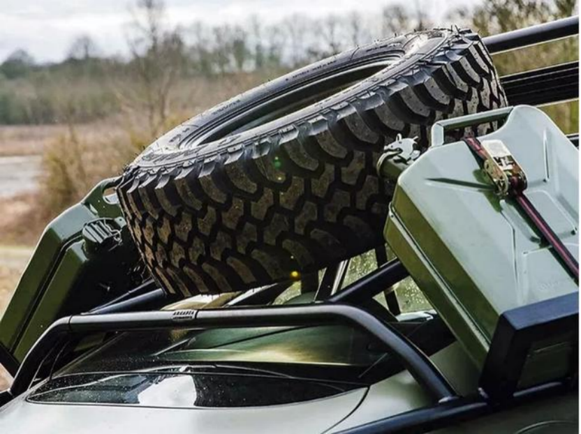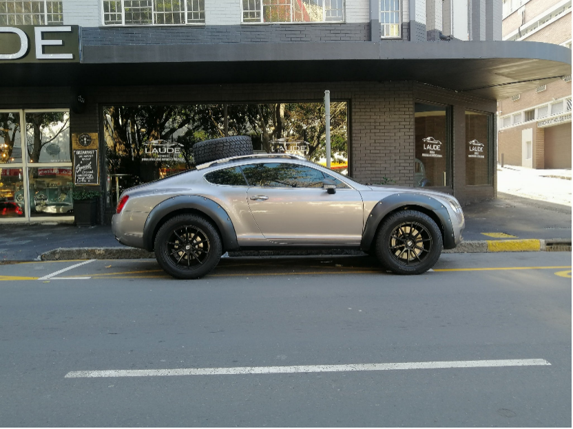四条固铂越野胎,车顶行李架,外扩的轮眉,还有头顶的备胎,使得这辆欧陆GT成为了街道中的“怪物”。