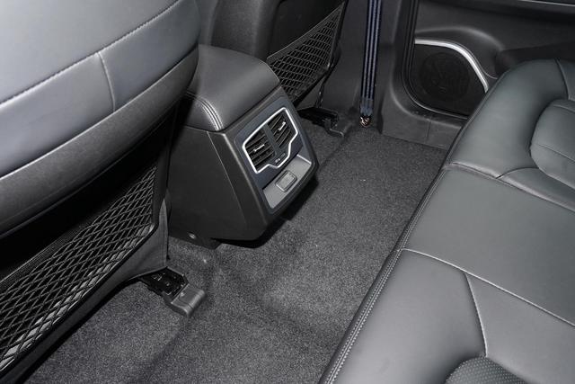 后排座椅延续了前排设计风格,靠背角度支持小范围调节,后排腿部空间表现中规中矩,地板中间的轻微凸起,对舒适性影响不大。