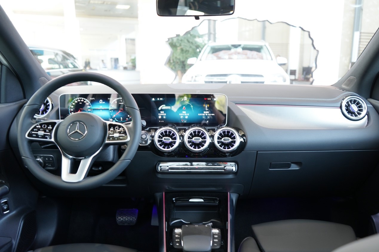 内饰方面,车内的设计非常熟悉,基本和新款A级和GLB (配置|询价)别无二致,最新的家族化设计也让这款GLA精致不少,采用了双10.25英寸的双连屏设计,车机系统采用最新的MBUX系统,包括经典的飞机引擎出风口也非常炫酷,另外副驾驶前侧也采用了金属质感的饰板,这样的设计也更能偏向于年轻化。中控部分也配备了多媒体触控板,后方的凸起设计非常人性化,能够给予手腕足够的支撑。上一代GLA的座椅都是一体运动式的座椅,现在的座椅则对舒适性有更高的保证,包括可调节的头枕以及推托。虽然看上去没有那么的运动,但乘坐体验更加舒服。后排得益于车身的增高以及轴距的加长,全新GLA的空间表现自然会更好。