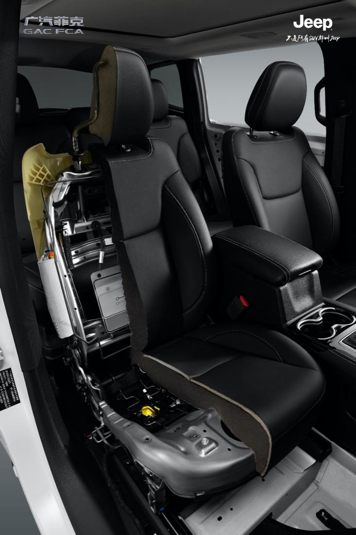 Jeep大指挥官的前后排座椅骨架均采用钢管+钣金的结构,这要比普通的钢管+钢丝结构拥有更强的抗压变形能力,其座椅关键部位采用了与A柱、B柱和车顶相同强度的1350MPa钢材。此外,大指挥官的二、三排座椅靠背骨架为金属大背板,相比塑料板,安全性和支撑性更佳。