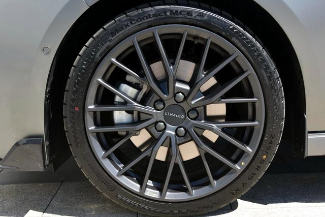 尾部下方采用了双边共四出的排气形式,中央"LYNK & CO"的标识镶嵌在能量晶体尾灯之间,无论点亮与否都拥有很高的辨识度。可以说四出排气+尾部扩散器让尾部看起来攻击性很强,材质也分两种,上层为偏灰色且带有磨砂质感的材质,而下层则为亮面的钢琴烤漆材质。
