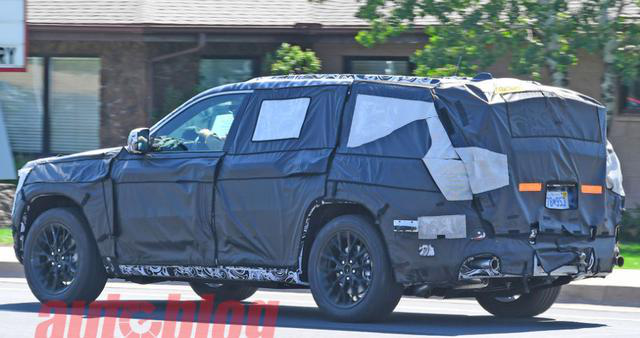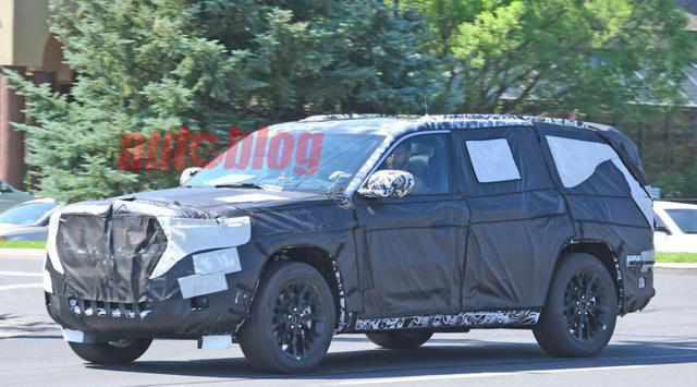 外观方面,新车外观延续了现款车型的硬朗霸气风格,前脸采用竖直排布的七孔式矩形镀铬格栅,前大灯采用小面积类矩形的设计,使车头辨识度明显提升。车身侧面,侧面造型更加修长,或进行加长处理,不排除将提供三排座椅。尾部方面,车尾灯的设计从目前观察到的来看,预计其造型与现款车型基本保持一致。