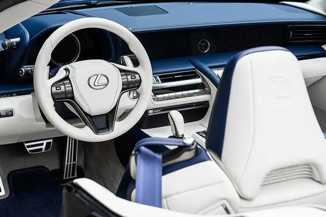 内饰方面,整个内饰和游艇一样,全部以白色为主色调,并在车门饰板、仪表盘上利用深蓝色饰条进行对比衬托。配置上,新车提供了Android Auto、Apple CarPlay等。值得一提的是,新车软顶结构使用了雷克萨斯最新的纤维材料,该材料内部由四层纤维组成,静谧性表现得到最好的保障,折叠软顶机构可在时速50km/h以下实现开闭功能,开启和闭合时长约15秒。