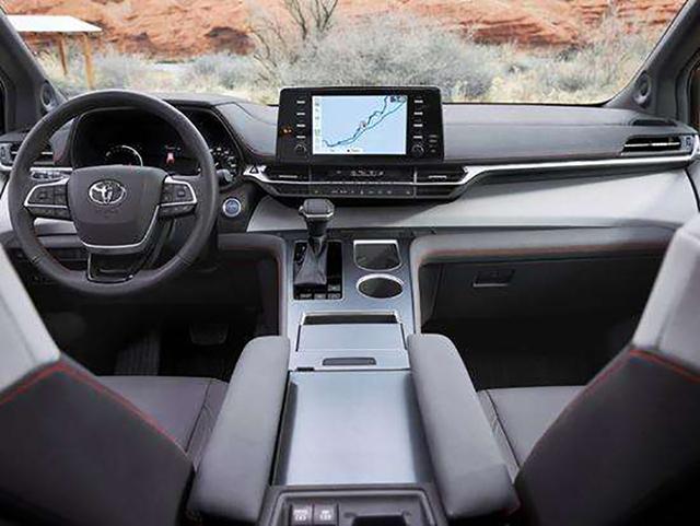 全新丰田Sienna(塞纳)内饰可谓大改动,一改现款车型平庸的设计。新家族式设计,中控台更倾向于驾驶位,层次鲜明。同时,座椅采用了大面积的皮质进行包覆,双色皮革显得非常时尚。全新丰田Sienna(塞纳)配备了7英寸数字仪表盘+9英寸悬浮式触摸屏,并支持Android Auto和苹果CarPlay。配置部分,全新丰田Sienna(塞纳)标配Safety Sense 2.0系统、10个安全气囊、6扬声器音响及7个USB接口。此外,包括12扬声器音响、10英寸驾驶位抬头显示、全景影像、8向可调的前排真皮座椅。