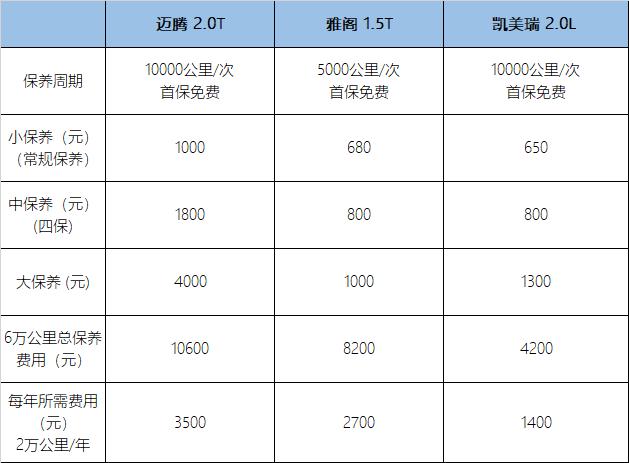 结果显示,迈腾2.0T车型月均养车费用大概需要1959元,雅阁1.5T车型需要1583元,凯美瑞2.0L车型需要1512元。
