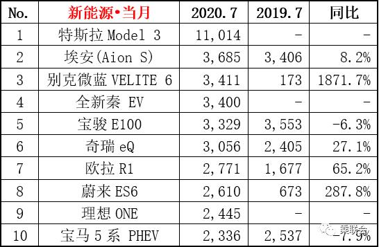 值得一提的是,刚上市不久的别克微蓝VELITE 6成新兴黑马,同比增幅高达四位数。