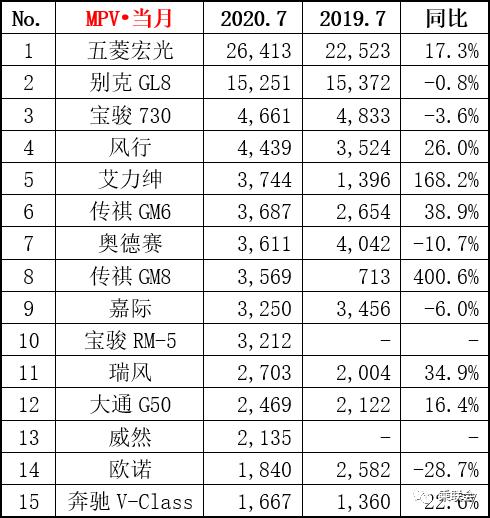 7月,MPV市场的终于实现了止跌回升,除了市场两端的五菱宏光和别克GL8外,整体来车型销量都有所回升,其中传祺GM8和艾力绅的涨幅甚至达到了三位数,五菱宏光出现了罕见的同比正增长。近期推出的吉利嘉际和宝骏RM-5表现也还算不错,两款新生代MPV嘉际险胜宝骏RM-5。