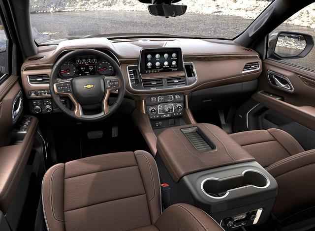 雪佛兰Suburban作为典型的美式全尺寸SUV车型,车身尺寸十分宽大,加上平直硬朗的造型设计,整车视觉感受十分霸气。细节方面,前脸采用大尺寸镀铬辐条式进气格栅,搭配上两侧造型平直的前大灯,使新车前脸极具气势。车侧采用大量直线条进行勾勒,其中粗壮的C柱,以及C柱到D柱之间面积巨大的侧车窗,再加上大尺寸的多幅条镀铬轮圈,使整车极具力量感,体现出极强的美式豪华感。