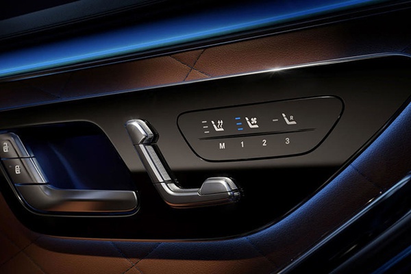 此外,在全新车型上我们也看到了在门板处的设计按钮设计进行了大量优化。奔驰的理念非常简洁明了,属于座椅的设计就在专属的地方进行调节,于是乎开关锁、座椅电动调节、座椅通风加热以及座椅记忆等功能都被放置在了门侧处;这种设计对于使用便利性的提升是非常明显的。