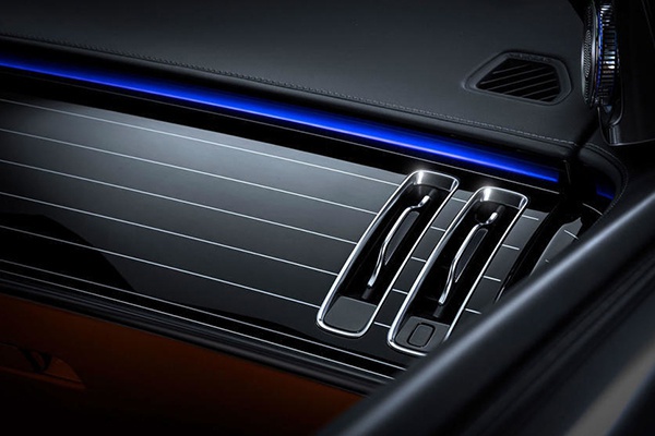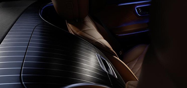 与此前公布的谍照不同,全新奔驰S并没有采用平行双幅方向盘设计,而是采用了与奔驰S相似的V型三幅式方向盘设计。此外,在座椅靠背、中控饰板以及后座靠背饰板处都能够看到大量的开孔木饰板,这与我们熟悉的豪华游艇上的用料颇为相似;这也暗示了奔驰S在豪华领域的不懈追求。