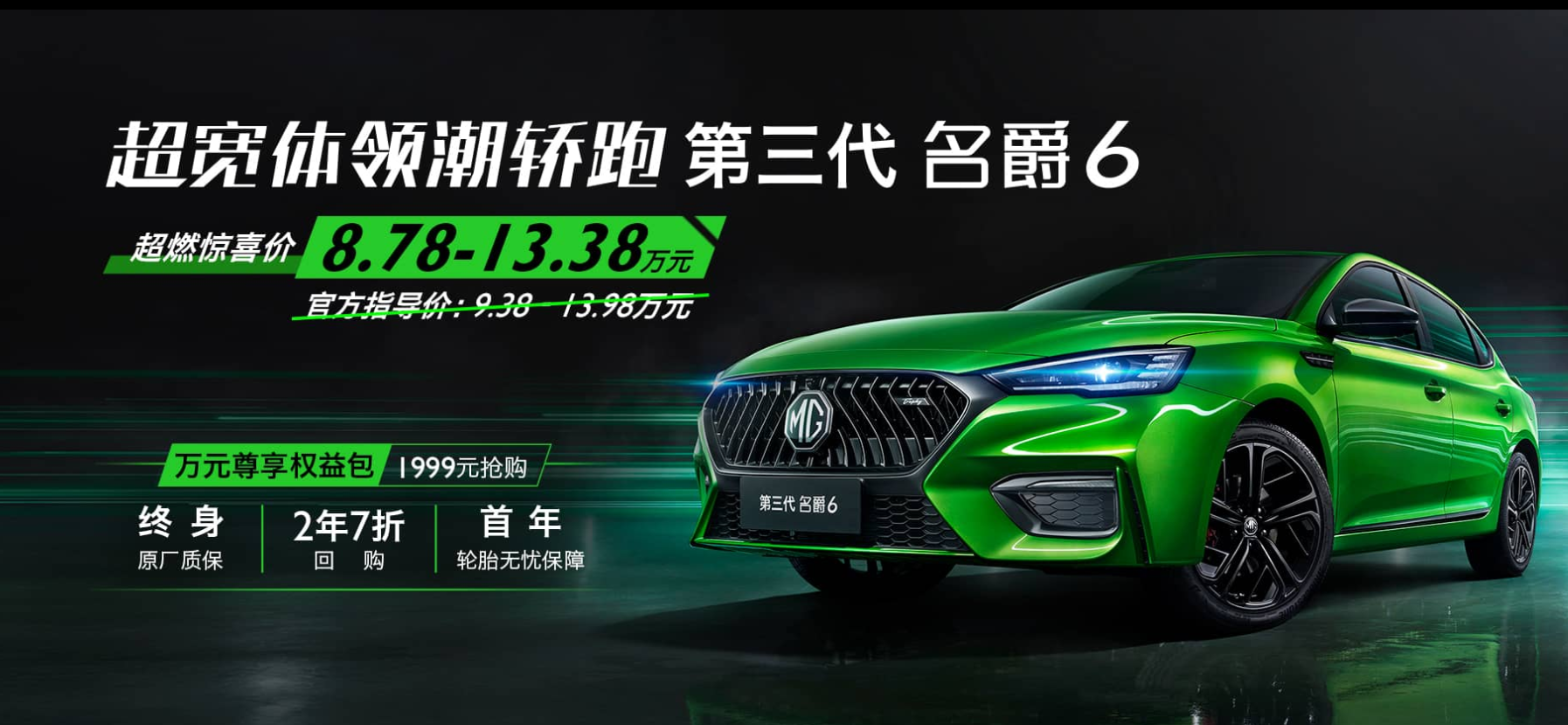 作为名爵品牌“Mission 100”全新战略发布后的首款新车,第三代名爵6在上市之际共推出了4款车型,官方指导售价区间为9.68-11.98万元。此外,在上市的同时,2019款的名爵6也宣布停产停售。不过在上市期间购买新款名爵6经典系列车型(2020款名爵6),可享5年送10次保养,零首付、零利率、零月供,以及VIP交车装潢等“三重礼包”。